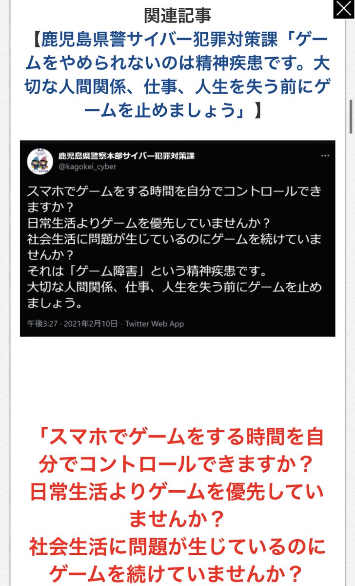 警察のツイートが問題になってるけど これは精神疾患の人に失礼ですね 大人にもなって自立できない状況になるまでゲームしてる人 が身近にいるけど 被害者としてわかることは精神疾患というより現実逃避しかできないただのチンパンだということです
